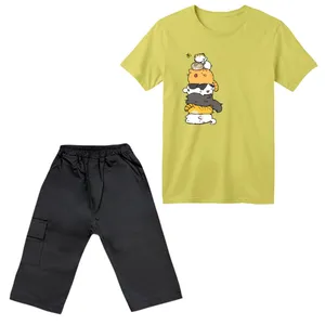 ست تی شرت و شلوارک پسرانه مدل گربه کد 6 رنگ سبز