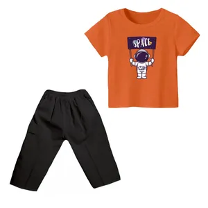 ست تی شرت و شلوارک پسرانه مدل فضانورد کد ۱۰ رنگ نارنجی