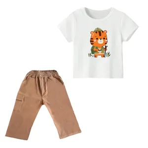 ست تی شرت و شلوارک پسرانه مدل ببر کد ۱۵ رنگ کرم