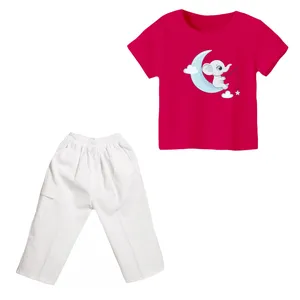 ست تی شرت و شلوارک دخترانه مدل فیل کد ۴ رنگ سرخابی