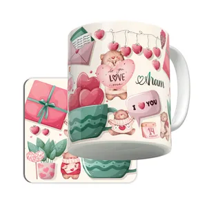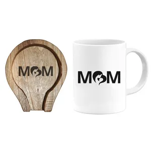 ماگ ساخته شده از سرامیک درجه یک با ماندگاری رنگ دائمی در استفاده روزمره زیرلیوانی چوبی با طرح حکاکی شده دارای ماندگاری دائمی طرح