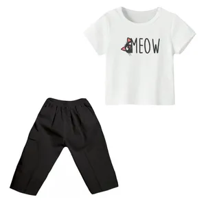 ست تی شرت و شلوارک دخترانه مدل گربه کد 16