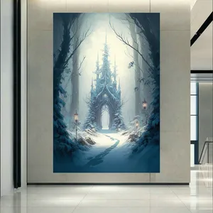 تابلو بوم طرح مخمل مدل کاخ و گلهای رنگارنگ کد AR302627