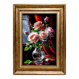 تابلو فرش ماشینی نقش نگار رضوی طرح گل کد 454KC