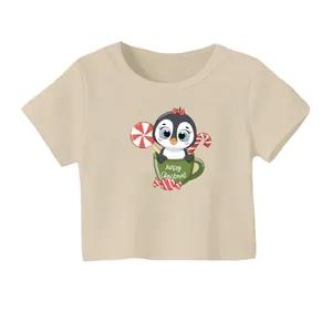 کراپ تیشرت آستین کوتاه زنانه مدل گوزن کریسمس کد 1