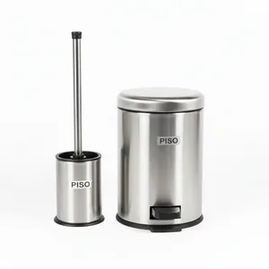 ست سطل زباله و فرچه بهازکالا مدل دیواری کد YP-badbezani-estil-30cm مجموعه 2 عددی