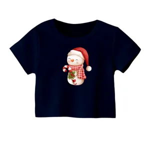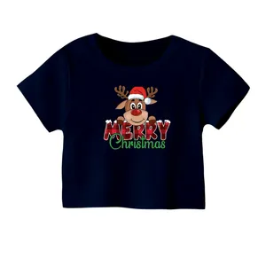کراپ تیشرت آستین کوتاه زنانه مدل گوزن کریسمس کد 2