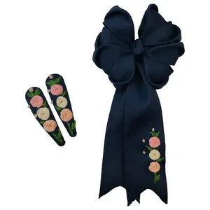گیره پاپیونی انبری و تق تقی گلدوزی شده مدل NR06 (بسته سه عددی) با روبان ساخته شده، با دست گلدوزی شده و قابل شستشو می باشد.