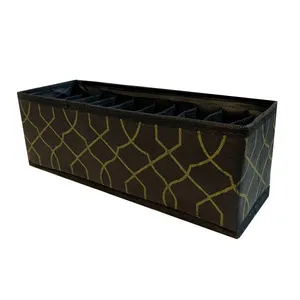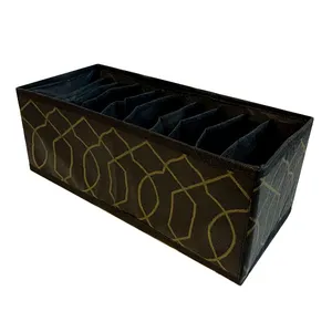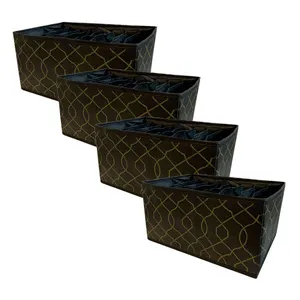 ارگانایزر تن تن مدل اسکلت دیواره کد SML شامل 3 عدد ارگانایزر از جنس پارچه مقاوم که داخل تمام دیوارههای آن اسکلت مقوایی ضخیم و مستحکم بکار رفته است میباشد و قابلیت تا شدن برای حمل و نقل و نگهداری آسان را دارا میباشد. این ارگانایزرها به رنگ مشکی بوده و در دو مدل با طرح طلایی و نقرهای عرضه میشوند. ابعاد این ارگانایزرها در سایز اسمال 35x12 سانتی متر در ارتفاع 12 سانتی متر بوده با 10 محفظه جدا کننده در داخل آن، در سایز مدیوم 35x16 سانتی متر در ارتفاع 14 سانتی متر با 10 محفظه جداکننده در داخل آن و سایز لارج 35x22 سانتی متر در ارتفاع 18 سانتی متر با 8 محفظه جداکننده در داخل آن است.