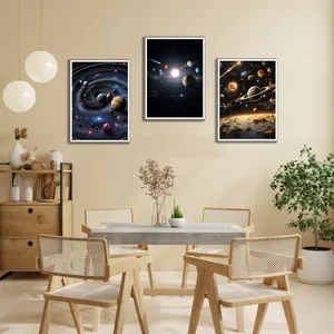 تابلو بکلیت طرح نقاشی و هنر دیجیتال فضا و کهکشان سیاره ها مدل B-bu3729 مجموعه 3 عددی