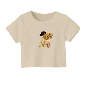 کراپ تیشرت آستین کوتاه زنانه مدل زنبور و گل