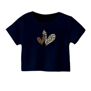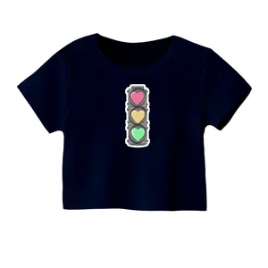 کراپ تیشرت آستین کوتاه زنانه مدل جدول رنگ سرمه ای