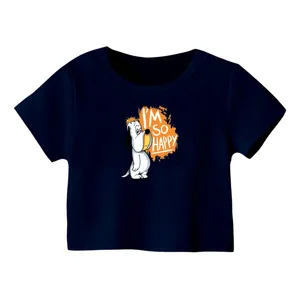 کراپ تیشرت آستین کوتاه زنانه مدل روح قهوه خور رنگ سرمه ای