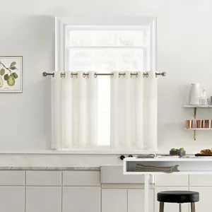 پرده تیکو دکو مدل کتان تور بالای سینکی سایز 140x60 سانتی متر مجموعه دو عددی