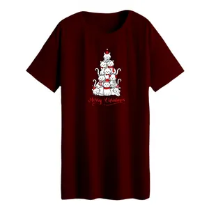 تی شرت لانگ زنانه مدل گربه کریسمس کد 2