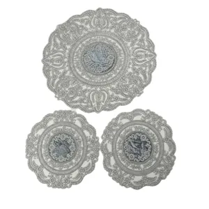 جنس این رومیزی تور گلدوزی شده بوده و بسیار نازک و لطیف و قابل انعطاف است .