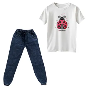 جنس تیشرت پنبه یکرو درجه یک میباشد و به هیچ عنوان پرز پرز نمیشود . جنس شلوار لی نازک کشی میباشد و در قسمت کمر و مچ کشدوزی شده است . چاپ روی تیشرت دیجیتال برجسته و فوق العاده با کیفیت میباشد و به هیچ عنوان کنده و یا ترک ترک نمیشود.