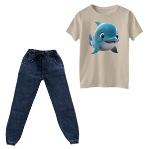 ست تیشرت و شلوار دخترانه مدل نهنگ کد 01