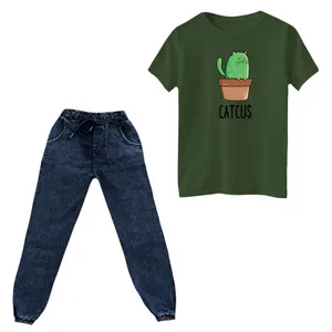 جنس تیشرت پنبه یکرو درجه یک میباشد و به هیچ عنوان پرز پرز نمیشود . جنس شلوار لی نازک کشی میباشد و در قسمت کمر و مچ کشدوزی شده است . چاپ روی تیشرت دیجیتال برجسته و فوق العاده با کیفیت میباشد و به هیچ عنوان کنده و یا ترک ترک نمیشود.