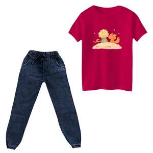 جنس تیشرت پنبه یکرو درجه یک میباشد و به هیچ عنوان پرز پرز نمیشود . جنس شلوار لی نازک کشی میباشد و در قسمت کمر و مچ کشدوزی شده است . چاپ روی تیشرت دیجیتال برجسته و فوق العاده با کیفیت میباشد و به هیچ عنوان کنده و یا ترک ترک نمیشود.