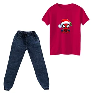 ست تیشرت و شلوار پسرانه مدل کریسمسی کد 08 رنگ سرخابی