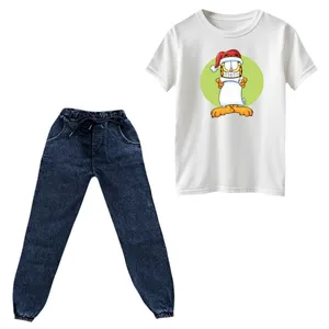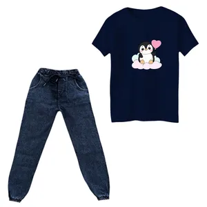 جنس تیشرت پنبه یکرو درجه یک میباشد و به هیچ عنوان پرز پرز نمیشود . جنس شلوار لی نازک کشی میباشد و در قسمت کمر و مچ کشدوزی شده است . چاپ روی تیشرت دیجیتال برجسته و فوق العاده با کیفیت میباشد و به هیچ عنوان کنده و یا ترک ترک نمیشود.