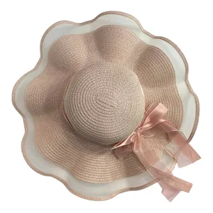 کلاه حصیری زنانه مدل ساحلی دالبری لبه توری ۰۳