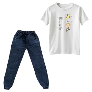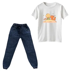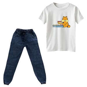 جنس تیشرت پنبه یکرو درجه یک میباشد و به هیچ عنوان پرز پرز نمیشود . جنس شلوار لی نازک کشی میباشد و در قسمت کمر و مچ کشدوزی شده است . چاپ روی تیشرت دیجیتال برجسته و فوق العاده با کیفیت میباشد و به هیچ عنوان کنده و یا ترک ترک نمیشود.