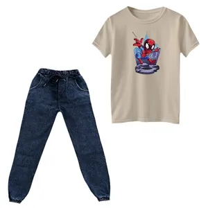 جنس تیشرت پنبه یکرو درجه یک میباشد و به هیچ عنوان پرز پرز نمیشود . جنس شلوار لی نازک کشی میباشد و در قسمت کمر و مچ کشدوزی شده است . چاپ روی تیشرت دیجیتال برجسته و فوق العاده با کیفیت میباشد و به هیچ عنوان کنده و یا ترک ترک نمیشود.