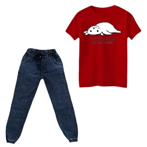 جنس تی شرت پنبه و جنس شلوار لی می باشد و قواره لباس آزاد است.در پارچه این لباس به هیچ عنوان مواد به کار نرفته و در نتیجه پرز پرز نمی شود.چاپ روی لباس دیجیتال برجسته و فوق العاده با کیفیت می باشد(مانند تصویر) و به هیچ عنوان ترک ترک نمی شود.پارچه و چاپ کاملا در برابر شست و شو مقاوم هستند.