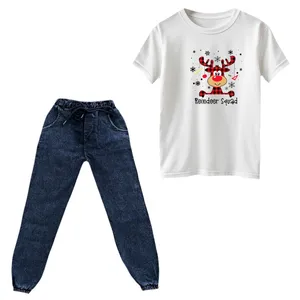 جنس تیشرت پنبه یکرو درجه یک میباشد و به هیچ عنوان پرز پرز نمیشود . جنس شلوار لی نازک کشی میباشد و در قسمت کمر و مچ کشدوزی شده است . چاپ روی تیشرت دیجیتال برجسته و فوق العاده با کیفیت میباشد و به هیچ عنوان کنده و یا ترک ترک نمیشود.