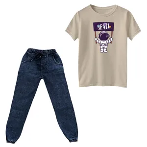 ست تیشرت و شلوار پسرانه مدل فضانورد کد ۱۳ رنگ کرم