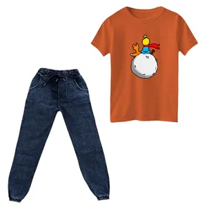 جنس تیشرت پنبه یکرو درجه یک میباشد و به هیچ عنوان پرز پرز نمیشود . جنس شلوار لی نازک کشی میباشد و در قسمت کمر و مچ کشدوزی شده است . چاپ روی تیشرت دیجیتال برجسته و فوق العاده با کیفیت میباشد و به هیچ عنوان کنده و یا ترک ترک نمیشود.