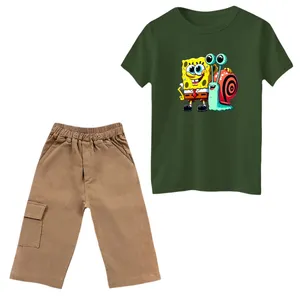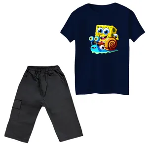 ست تیشرت و شلوار پسرانه مدل باب اسفنجی کد 2 رنگ سرمه ای