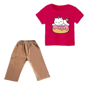 ست تی‌شرت و شلوار دخترانه مدل کاپ کیک رنگ سرخابی