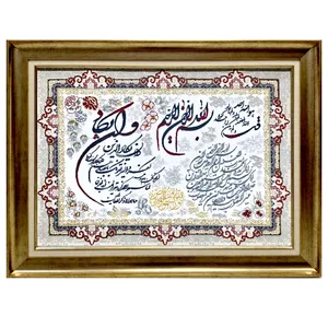 فرش این تابلو از ظریف ترین بافت فرش ماشینی (1500 شانه) می باشد وقاب این محصول از مدل پی وی سی دو فرم ایجاد شده که در هم کلاف شده است. قاب این تابلو فرش بسیار سبک و مقاوم می باشد که این خود باعث شده به مرور زمان دیگر خبری از تاب برداشتن قاب و یا خمیدگی قاب تابلو فرش نباشد . مناسب برای افراد خاص پسند همچنین در کیفیت بافت فرش این تابلو از درجه یک ترین نخ اکرلیک استفاده شده .