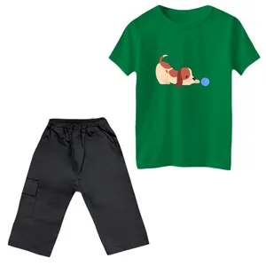 ست تیشرت و شلوارک دخترانه مدل سگ بازیگوش رنگ یشمی
