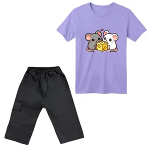 ست تیشرت و شلوارک دخترانه مدل موش های شکمو