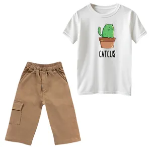 ست تیشرت و شلوارک دخترانه مدل کاکتوس کد 2 رنگ سفید