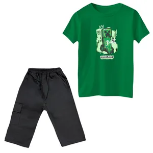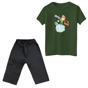 ست تیشرت و شلوارک پسرانه مدل لتس پلی رنگ یشمی