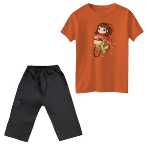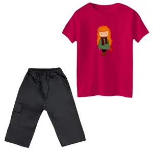 ست تیشرت و شلوارک دخترانه مدل دختر و سگ