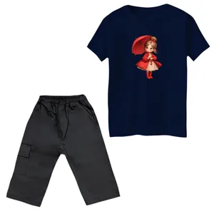 ست تیشرت و شلوارک دخترانه مدل دخترک و چتر رنگ سفید