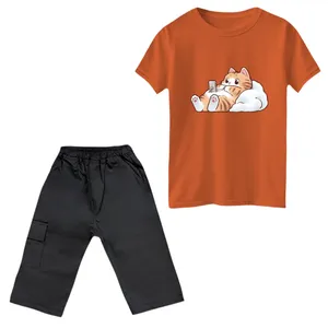 ست تیشرت و شلوارک دخترانه مدل گربه