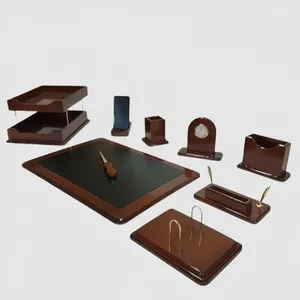 این ست شامل زیر دستی، جای قلم، جا کارت و کاغذ، جا موبایل، جا دستمال کاغذی، جا پاکت نامه، سینی نامه دو طبقه، ساعت رومیزی، و چند وسیله کاربردی دیگر است. طراحی این مجموعه به گونهای است که ضمن حفظ نظم میز کار، به افزایش تمرکز و بهرهوری نیز کمک می