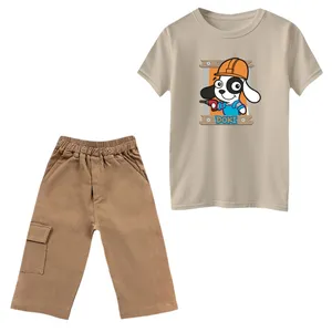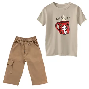 ست تیشرت و شلوارک پسرانه مدل روح و قهوه رنگ کرم