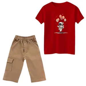 ست تیشرت و شلوارک پسرانه مدل فضانورد و بادکنک رنگ کرم