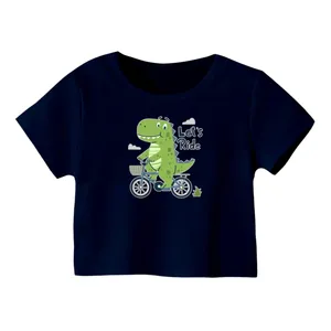 کراپ تیشرت آستین کوتاه زنانه مدل دایناسور کد 06 رنگ سرمه ای
