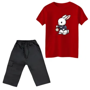 ست تیشرت و شلوارک پسرانه مدل خرگوش و ساعت رنگ سبز
