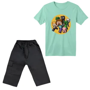 ست تیشرت و شلوارک پسرانه مدل ماینکرفت کد 9 رنگ سبز