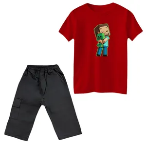 ست تیشرت و شلوارک پسرانه مدل ماینکرفت کد 13 رنگ سفید